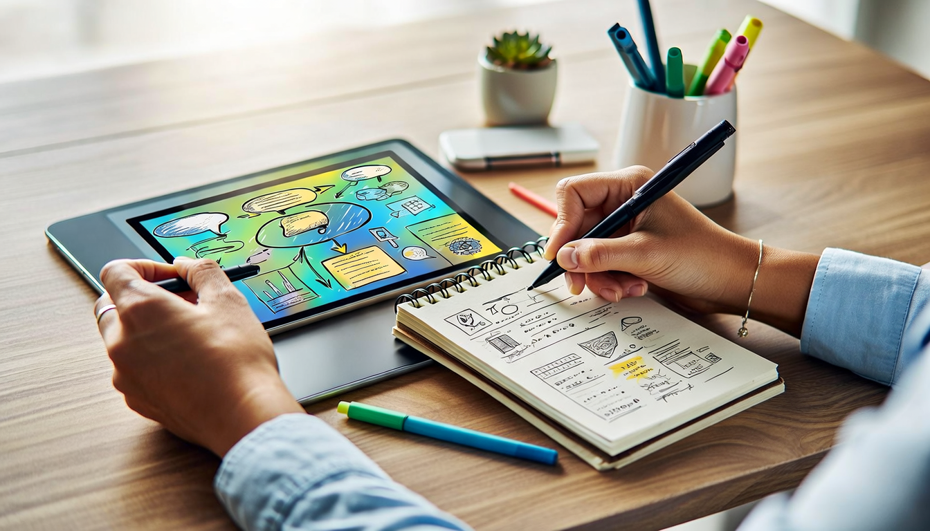 Avec les progrès technologiques, intégrer le sketchnoting dans des outils numériques est plus facile que jamais. Vous pouvez utiliser des tablettes graphiques pour créer des sketchnotes numériques, offrant ainsi une flexibilité accrue et l’opportunité d’atteindre un public plus large. En utilisant des plateformes de partage comme Pinterest ou Instagram, vous exposez vos créations à une audience mondiale.